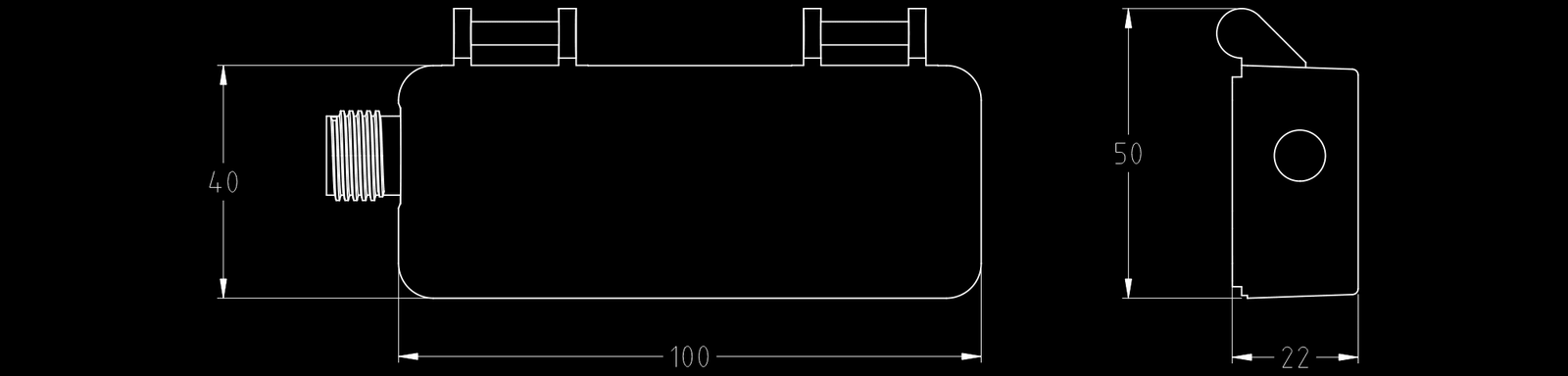 - 100W x 40H x 22D mm (110H with fixing tabs)